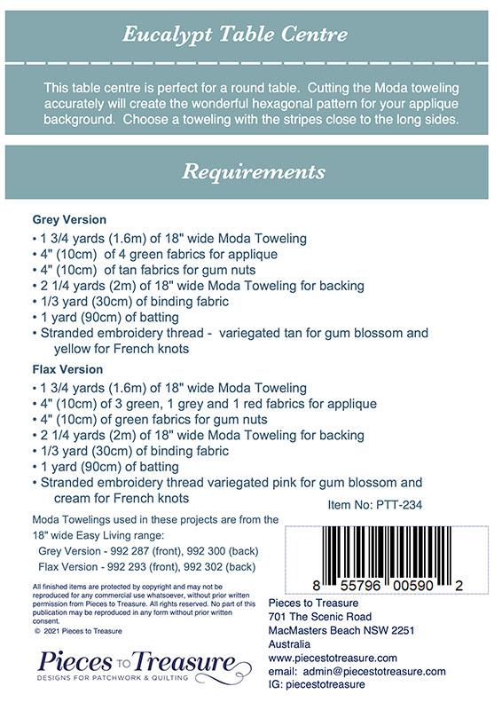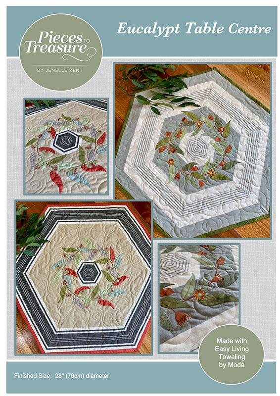 Eucalypt Table Topper Centre made with toweling Pattern, by Jenelle Kent for Moda. Uses 18" width toweling.