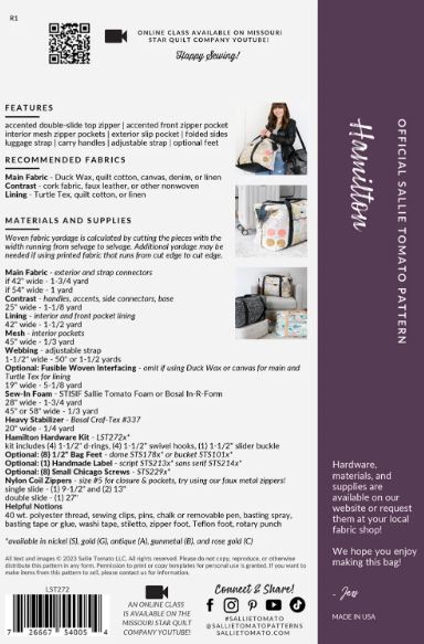 Hamilton Tote Bag Pattern by Sallie Tomato