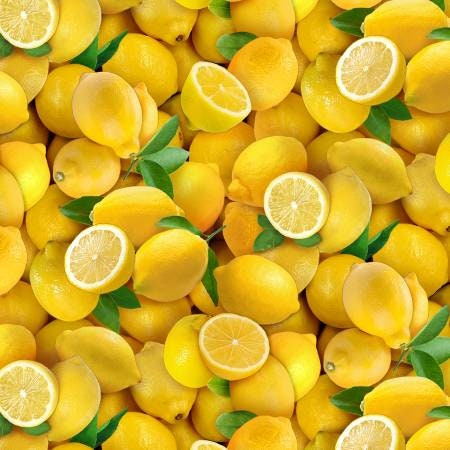 Bright yellow lemon fabric, digital print by Tracy Lizotte for Elizabeth Studio