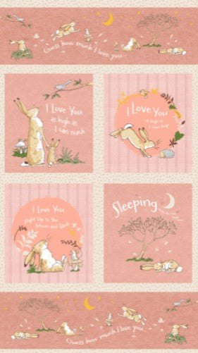 Guess How Much I Love You, Rust / Pink Fabric Panel by Anita Jeram for Clothworks
