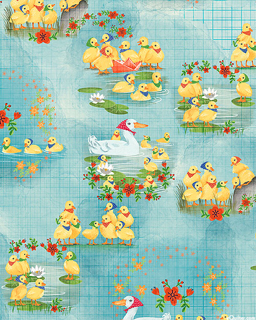 Darling Ducklings with Mama Cotton Fabric by PB Textiles