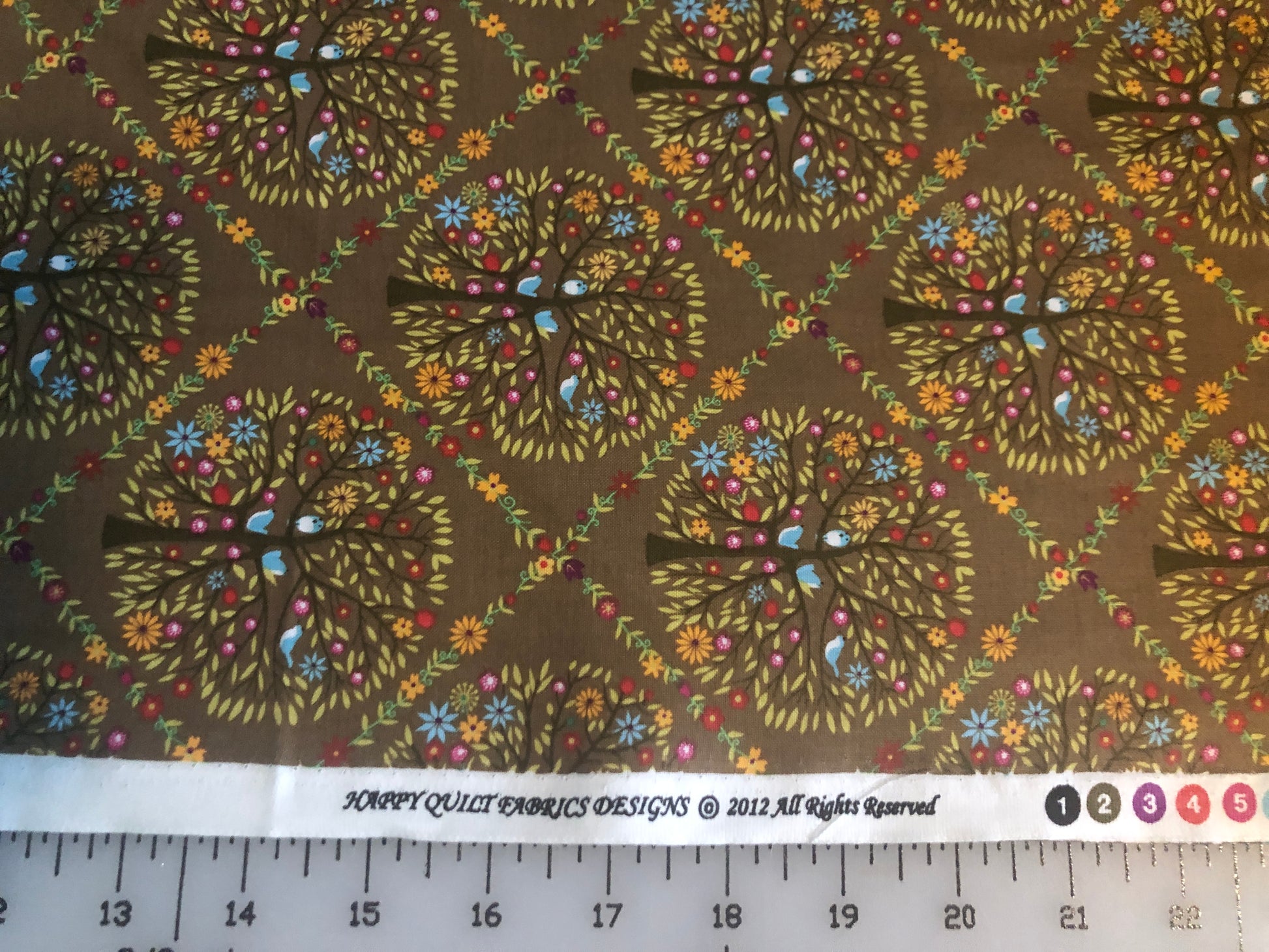 Colorful Floral Circular Tree Cotton Quilting Fabric by Happy Quilt Fabric Designs