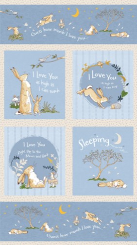 Guess How Much I Love You, Denim/Blue Fabric Panel by Anita Jeram for Clothworks