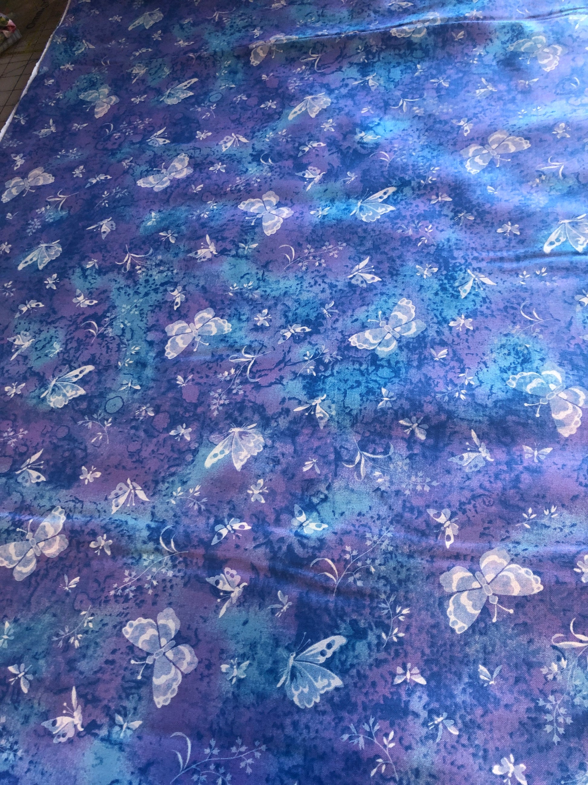 Rainbow Quilting Butterfly Fabric, shades of blue/te and purple