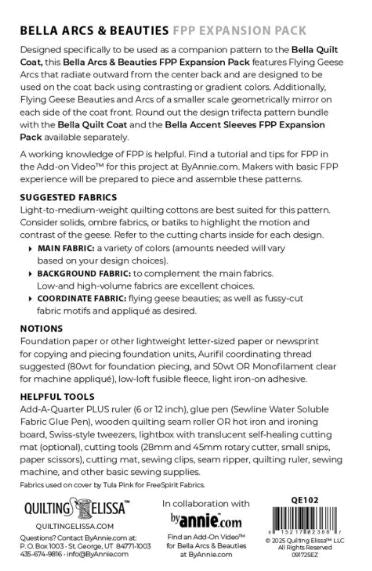 Bella Arcs and Beauties - FPP Expansion Pack for Bella Quilt Coat / Jacket Pattern by Quilting Elissa for ByAnnie