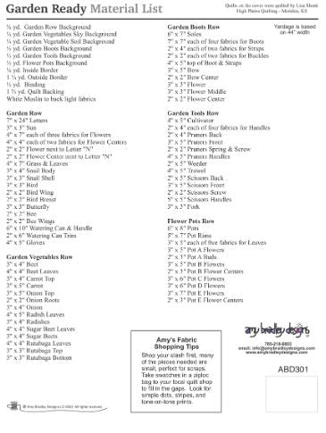 Garden Ready quilt pattern includes full size patterns, placement sheets, and instructions to make this 34 1/4" x 49 1/2" wall hanging. The technique is fusible applique.