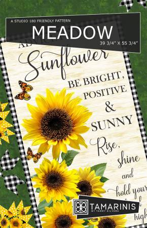 One gorgeous panel plus two easy pieced blocks equals a fun and stunning project. Meadow is Studio 180 friendly. The Tucker Trimmer, Magic Wand, and Wing Clipper are recommended. Pictured quilt is made with the Advice from a Sunflower fabric line for Timeless Treasures. Quilt finishes at 39 3/4" x 55 3/4".