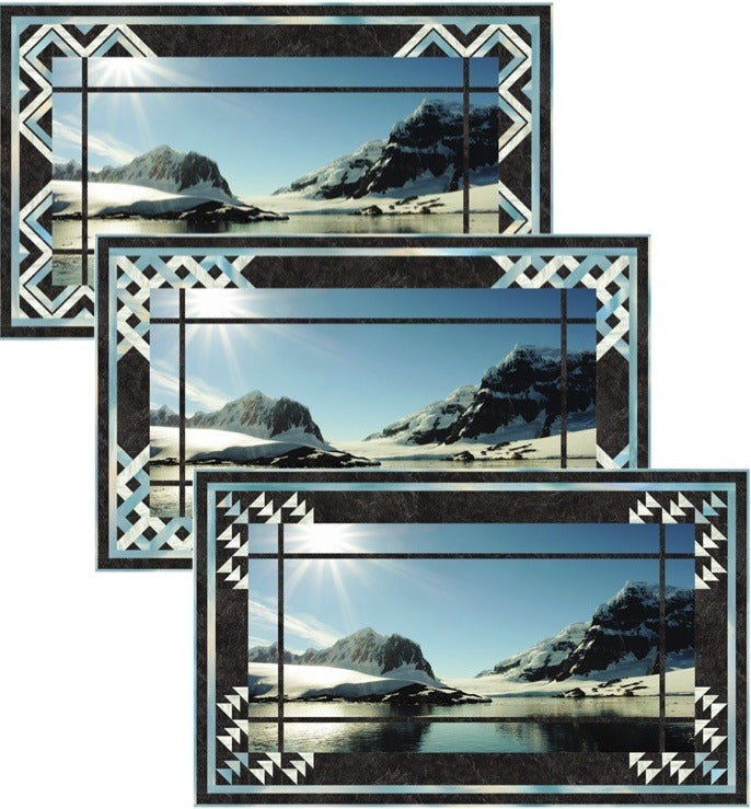 50-1/2″ x 30-1/2″ wall quilt. Select one of the three framing options for a 2/3 yard panel to make a unique wall quilt. Yardage given on the back cover will make any of the wall quilts shown on the front and back covers. Skill Level: Intermediate