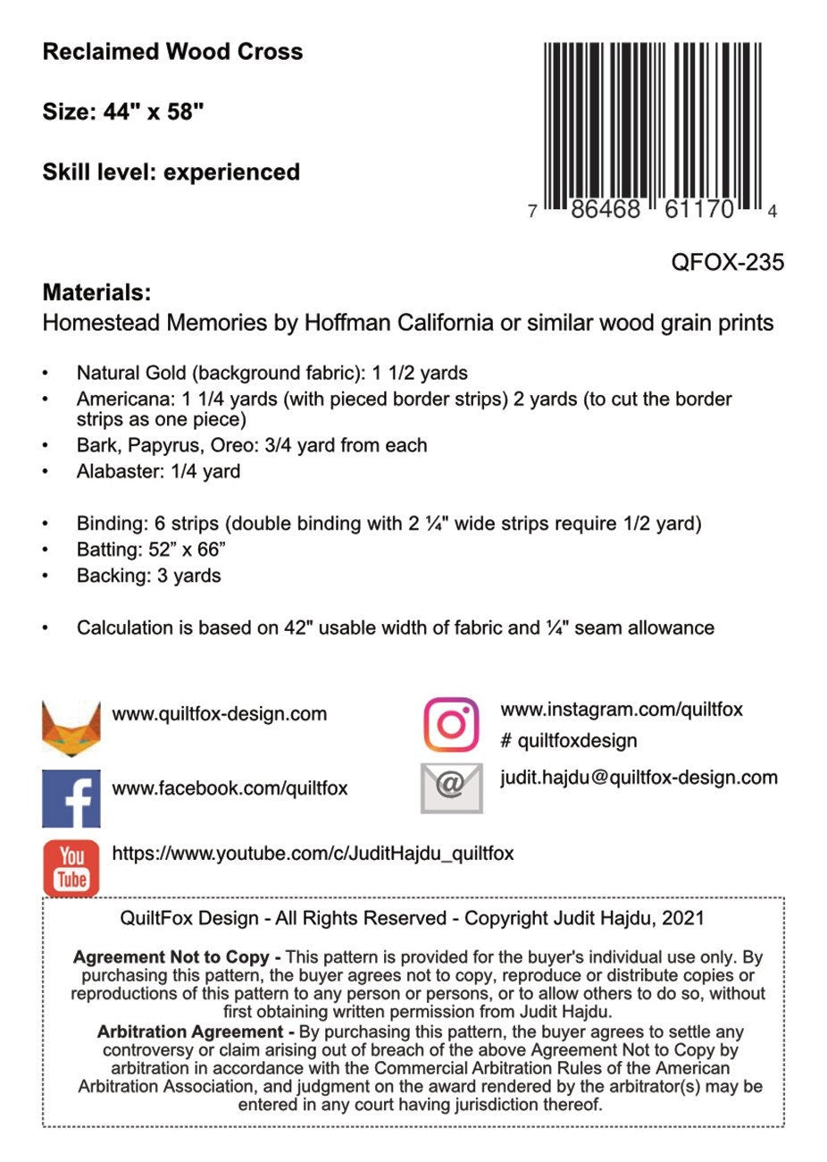 Listing is for 1 Reclaimed Wood Cross Quilt Pattern or Wall hanging pattern by Judit Hajdu